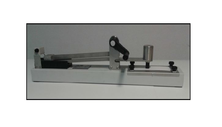 - Thiết bị này bao gồm một đế trên đó mẫu thử được cố định. Một cơ cấu trượt được bố trí để ngón tay di chuyển dọc theo mẫu.