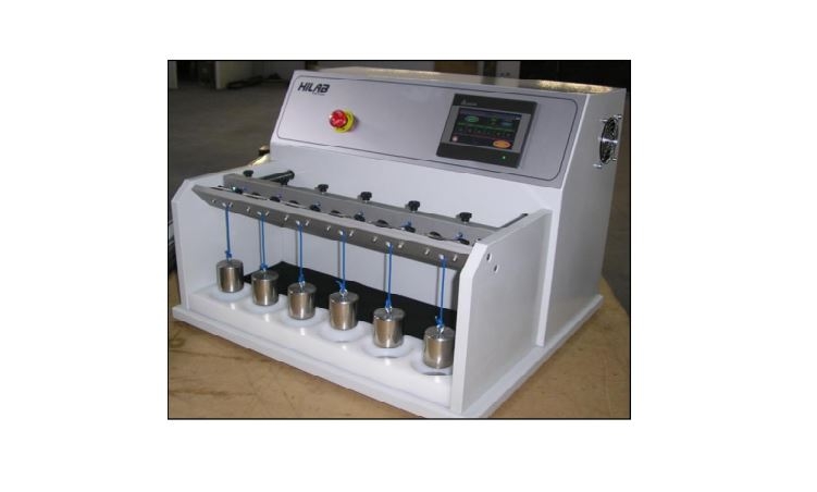 - Máy có sáu trạm. Mỗi trạm có một bộ đếm độc lập ghi lại số chu kỳ được thực hiện cho mỗi dây buộc. Khi một dây buộc không chịu được cho đến khi đạt được số chu kỳ được áp dụng trong bộ đếm chính, trọng lượng rơi xuống hệ thống dừng và cá nhân bộ đếm dừng ghi lại số chu kỳ đã tạo ra sợi dây đó.